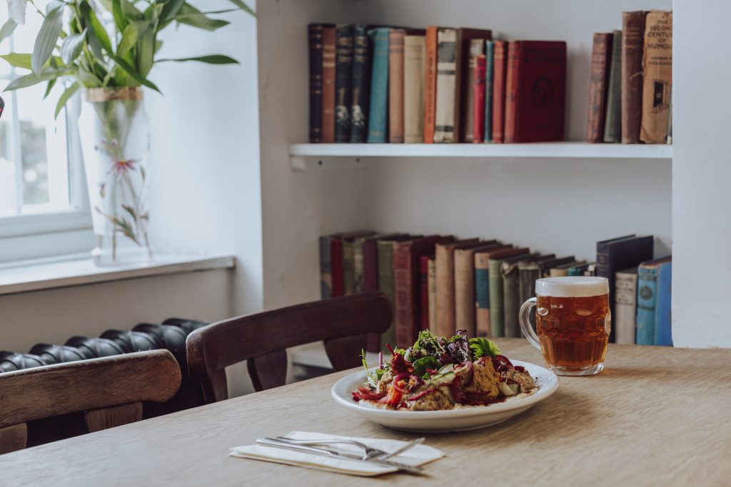 We serve a selection of local ales and gins from our well stocked bar, come and enjoy a drink with us in our sunny front courtyard, overlooking the beautiful Cornish countryside.